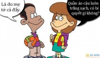 - Tớ thấy dạo này quần áo cậu luôn trắng sạch tinh tươm, có bí quyết gì không?