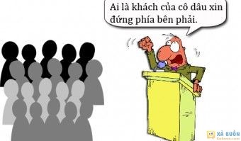 - Thay mặt gia đình tôi thật sự xin lỗi mọi người vì đã chuẩn bị chưa chu đáo. Để tiện sắp xếp, bây giờ ai là khách của chú rể xin vui lòng đứng sang bên trái.