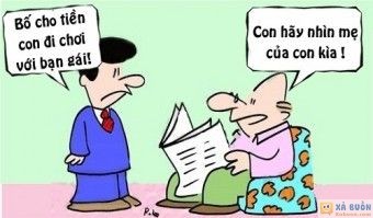 - Bố ơi, bố cho con vay ít tiền để đi chơi với bạn gái nhé!