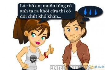 - Thì lúc bố em muốn tống cổ anh ta ra khỏi cửa thì có đôi chút khó khăn...
